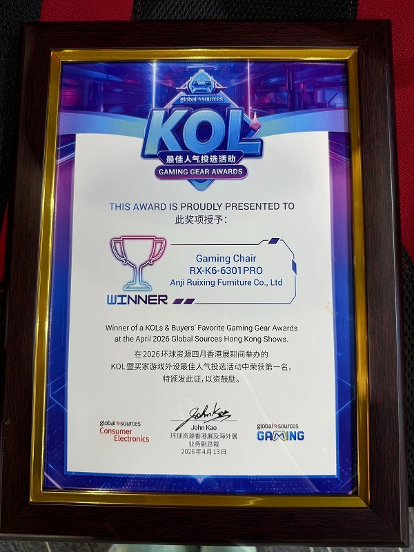 Jsme nesmírně poctěni, že můžeme oznámit, že naše herní židle (RX-K6-6301PRO) vyhrála na letošní výstavě cenu ‚2026 KOLs & Buyers‘ Favorite Gaming Gear. Opět jsme získali ocenění KOLs Best Popularity Award, což je uznání, které zdůrazňuje náš neochvějný závazek k dokonalosti v kvalitě a špičkovém designu v průmyslu herních židlí. RX-K6-6301PRO se svým vynikajícím ergonomickým designem, pokročilou technologií a stylovým vzhledem sklidil jednomyslnou chválu od KOL (Key Opinion Leaders) a kupujících a získal si toto prestižní ocenění.
